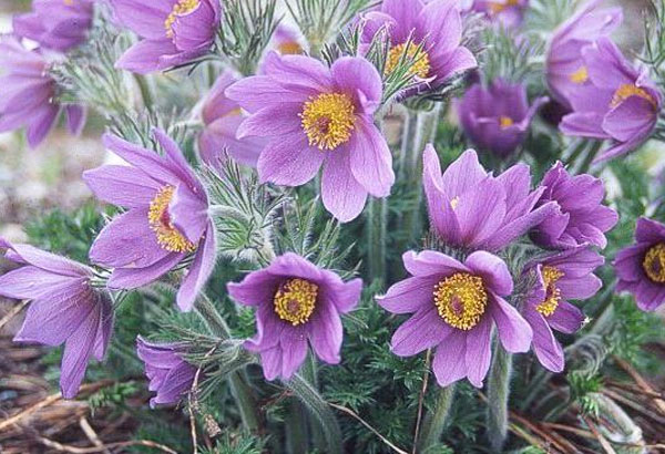 É uma planta herbácea perene, que se desenvolve rizomas verticais, que funcionam como órgãos de armazenamento de alimentos. Suas folhas e caules são, cinza macio, prateado. Ela cresce a 15-30 cm de altura e dá frutos de até 40 cm. As raízes são profundas no solo. As folhas são finamente divididas e dispostas em roseta, flores em forma de sino no início da primavera. As flores roxas são seguidas por sementes, cujas cabeças podem persistir na planta por muitos meses.